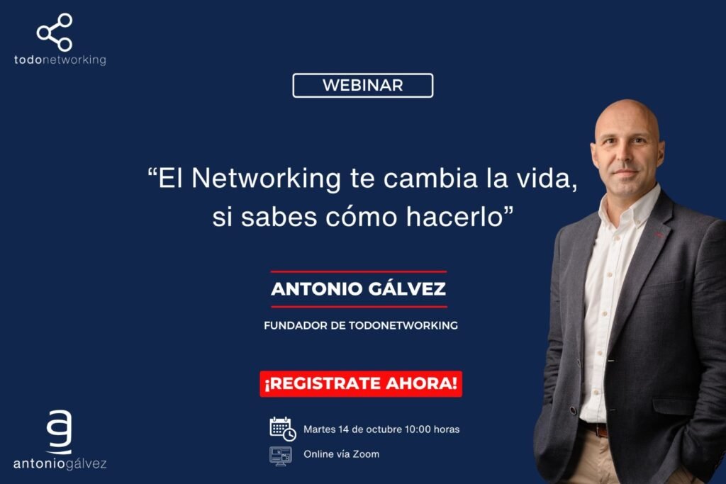 Webinair gratuito para aprender a tener exito en el networking, con Antonio Galvez, fundadorr de Todo Networking.