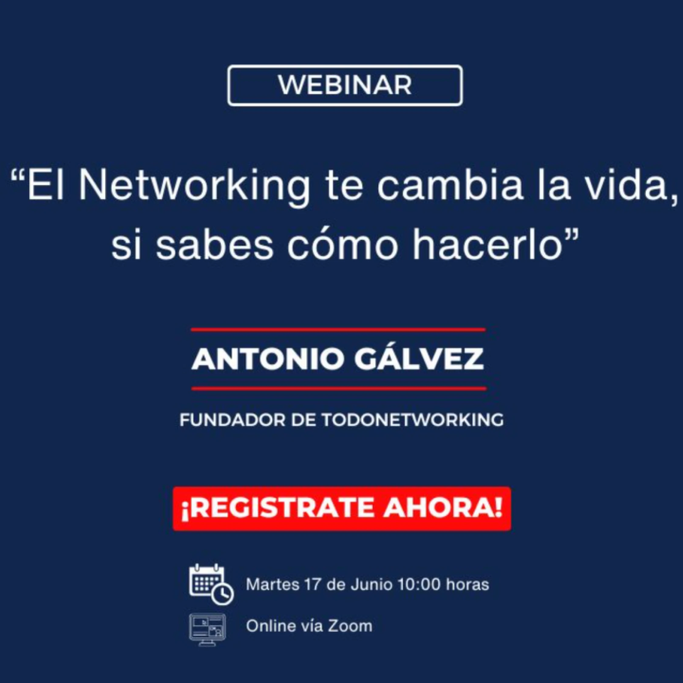 Webinair gratuito para aprender a tener exito en el networking, con Antonio Galvez, fundadorr de Todo Networking.